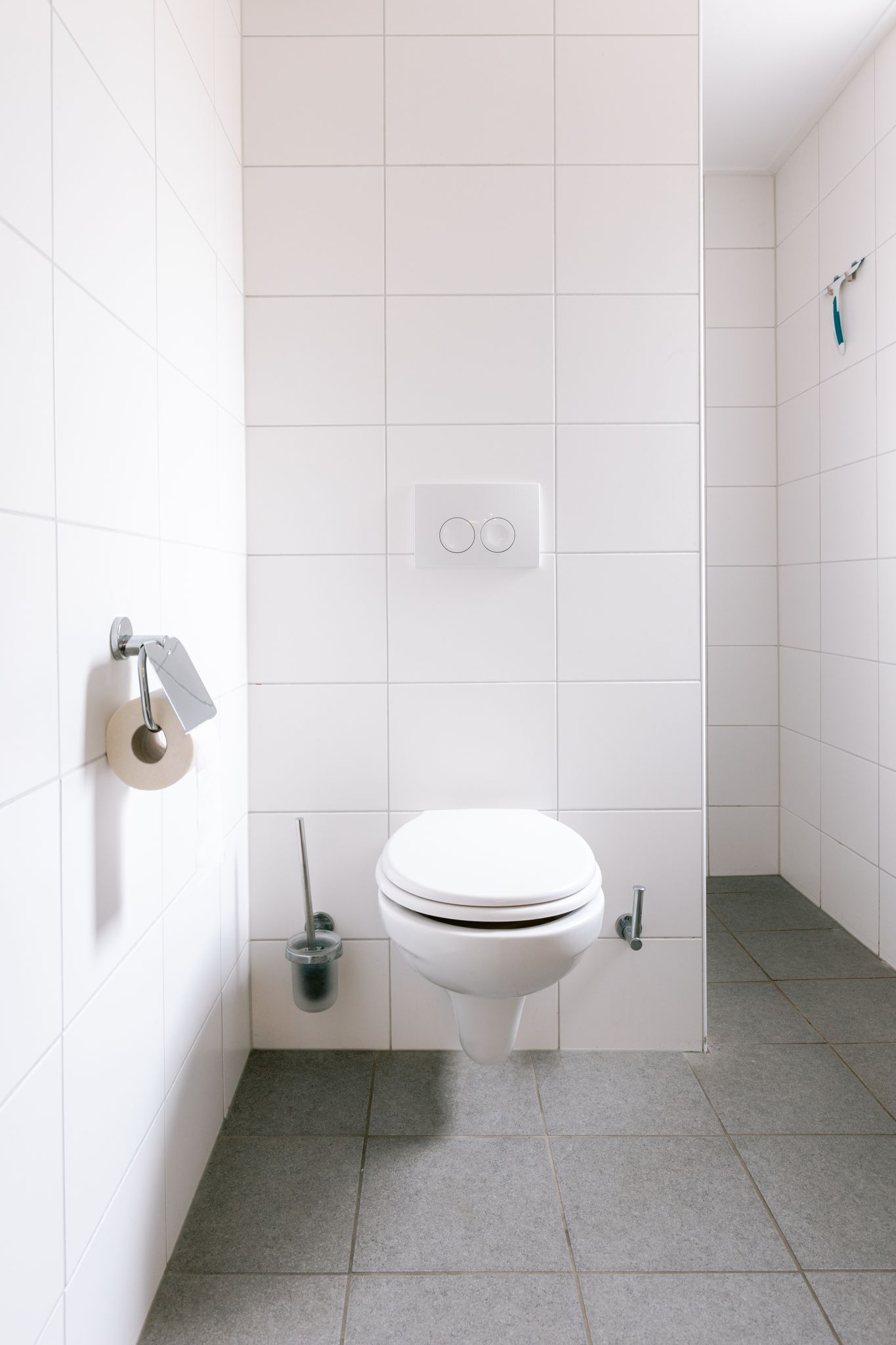 Badkamer met wc, wastafel en inloopdouche.