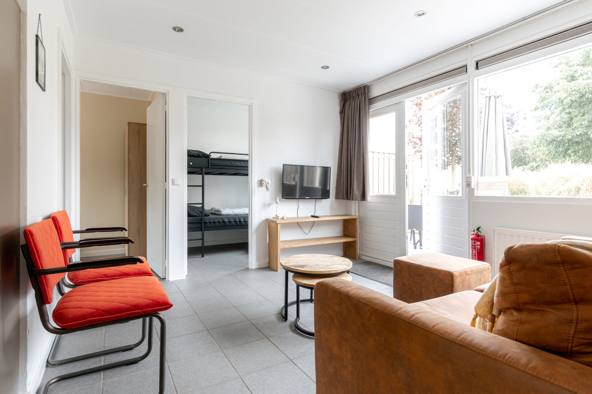 3 kleine slaapkamers (1 slaapkamer met 2 eenpersoons (70x200cm) bedden en 2 slaapkamers met (80x200cm) stapelbed).