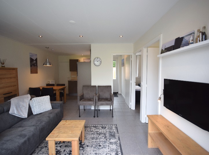 4 persoons appartementje met zicht op het speelveld vanuit de tuin aan de voorzijde van het huisje. De woning heeft 2 slaapkamers waarvan 1 met twee éénpersoons bedden en 1 met een stapelbed.